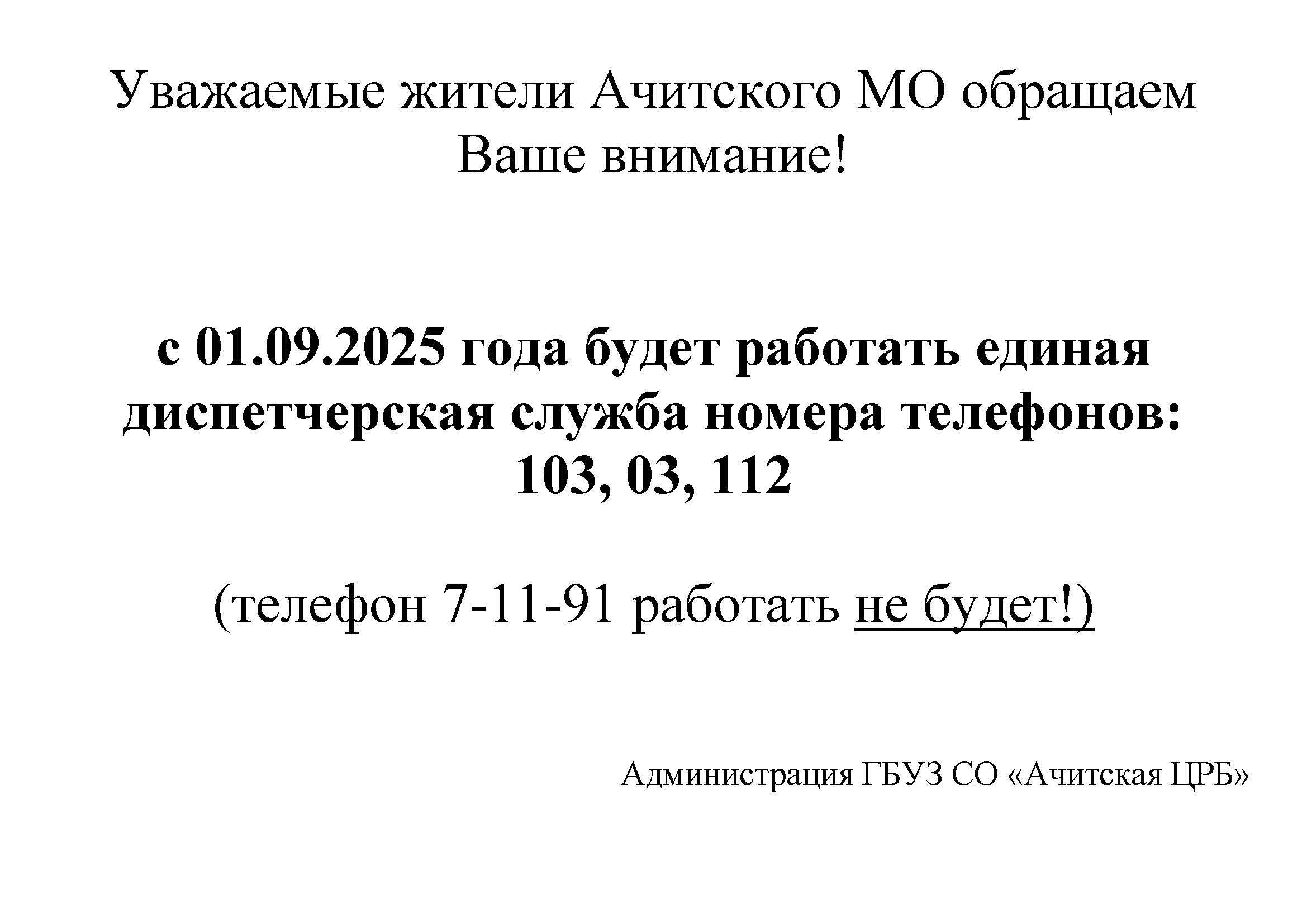 Режим работы ГБУЗ СО «Ачитская ЦРБ» (поликлиника, стационар, ОВП, ФАП)!